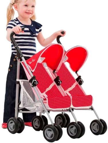 - Compact twin dolls stroller with side by side twin seats for two of your favourite dolls- Adjustable hood, twin under seat shopping baskets